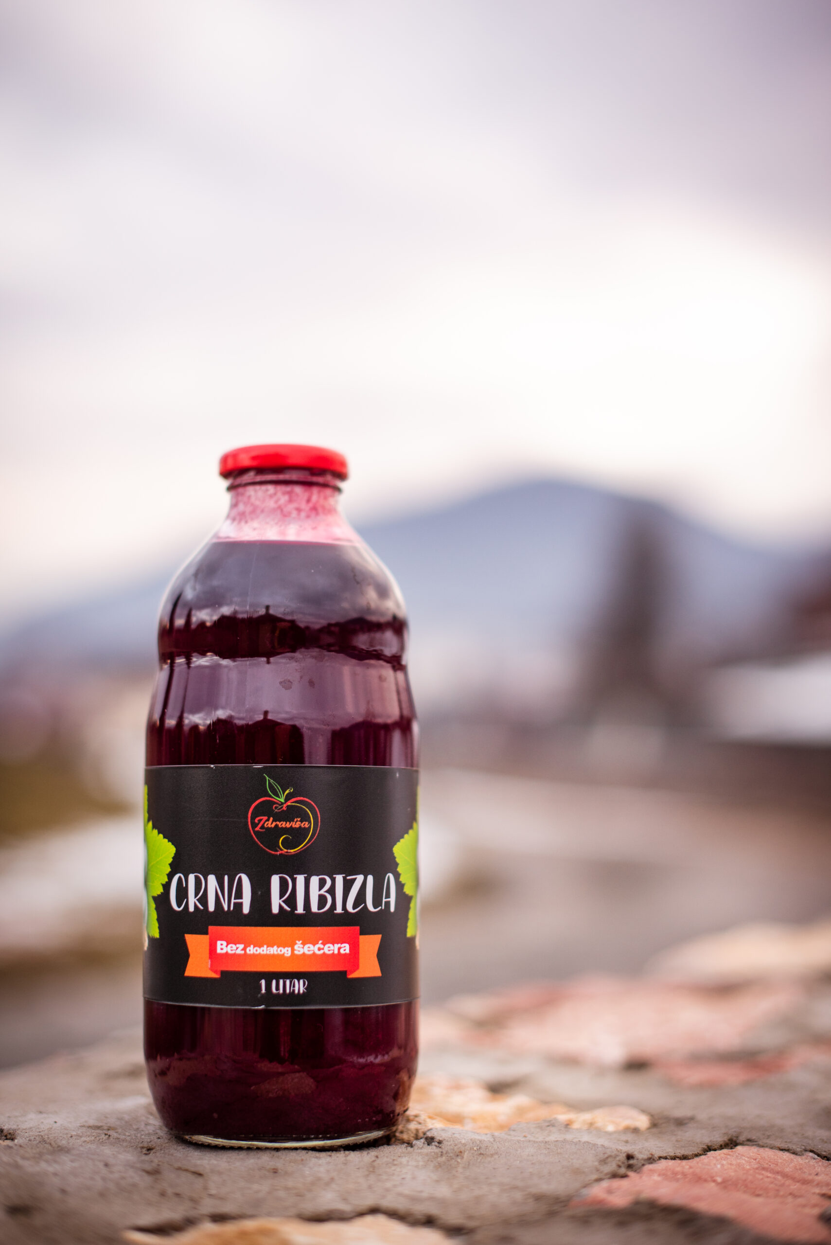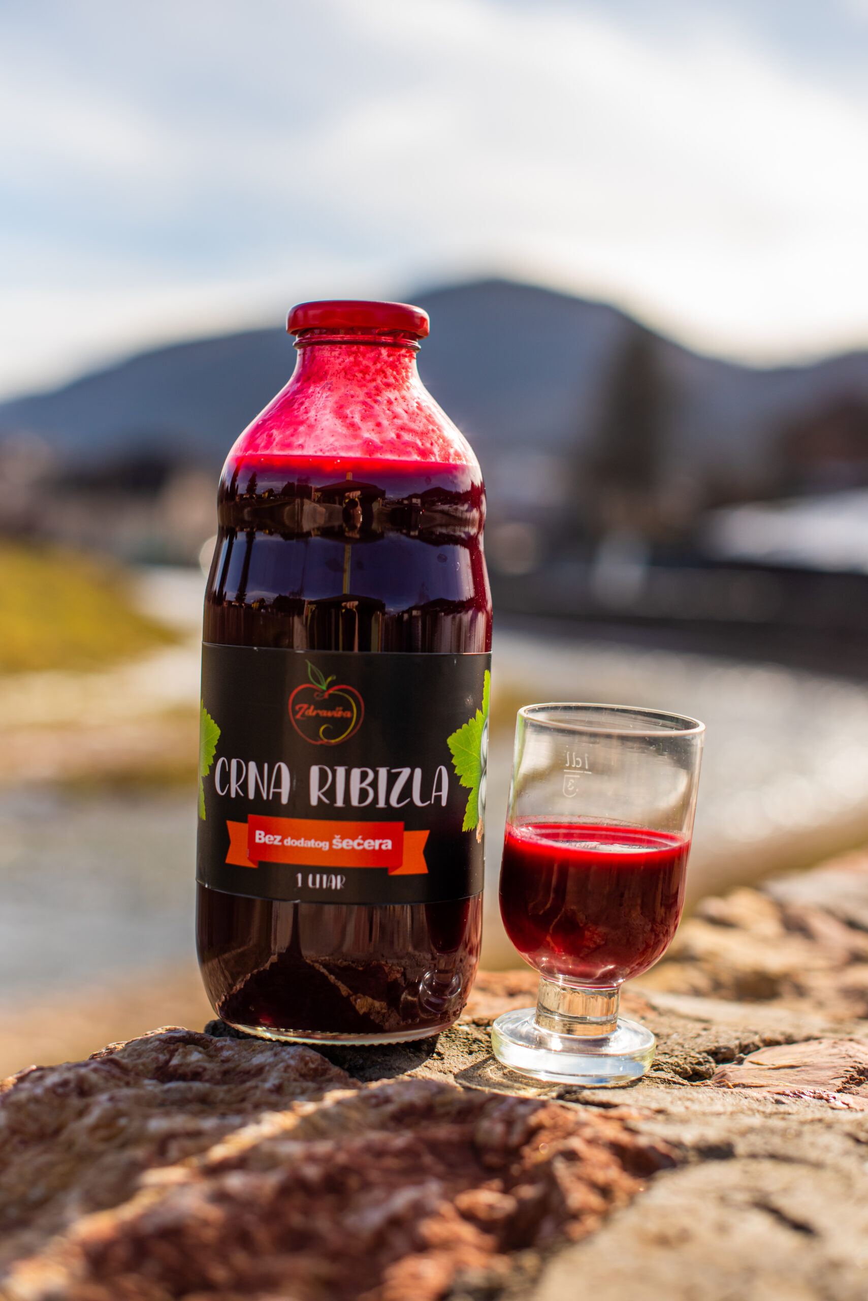 Prirodni sok od crne ribizle – bez dodatog šećera. Umesto vode dodat sok od jabuke, takođe bez šećera