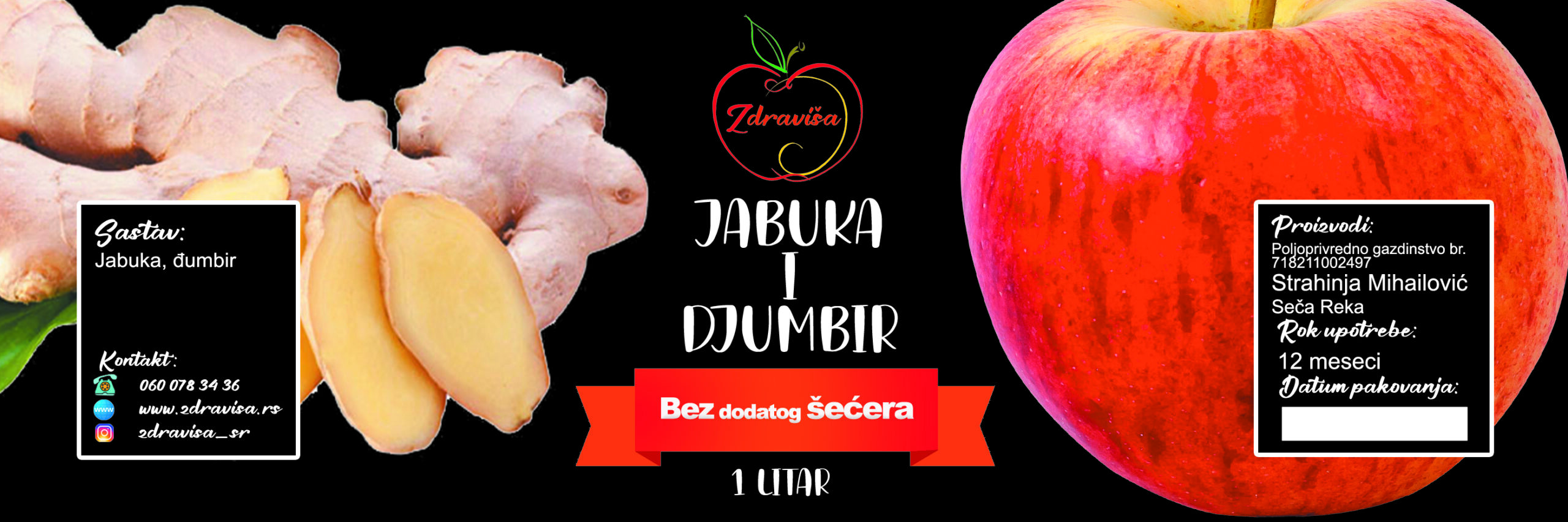 Mix sokova jabuke i đumbira. Bez dodatog šećera
