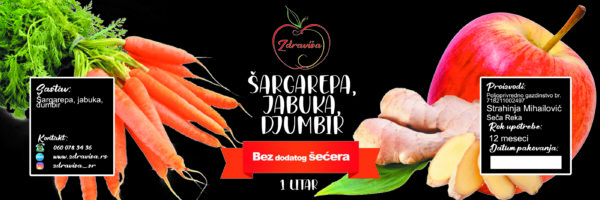 Mix sokova od šargarepe, jabuke i đumbira. Bez dodatog šećera